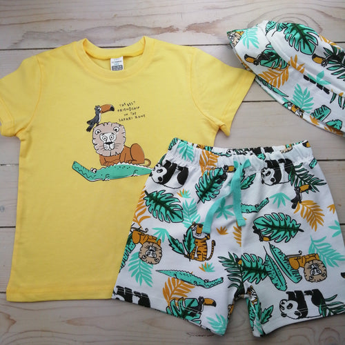 Boys Jungle themed Top and Shorts with matching Bucket hat