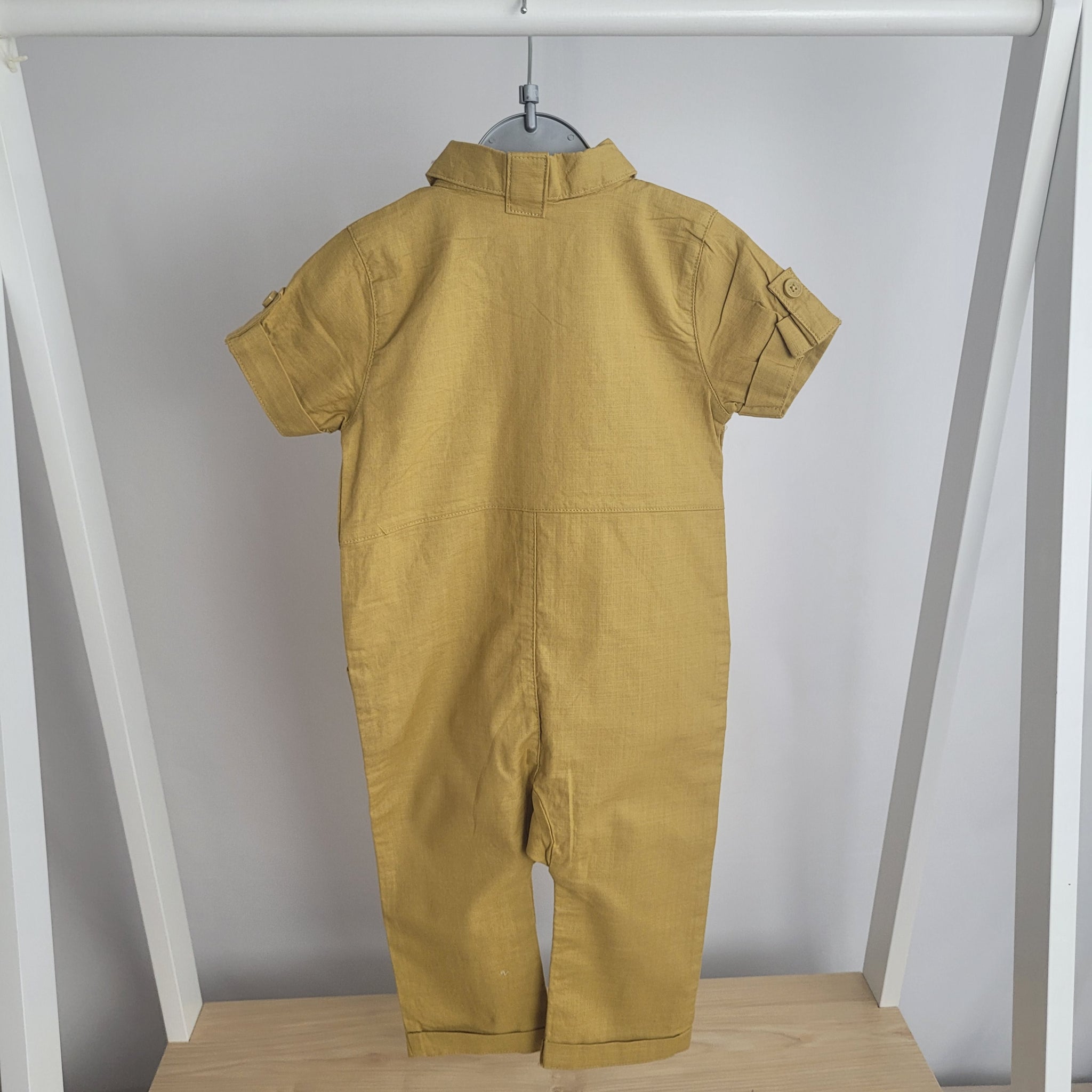 Explore the perfect balance of comfort and style with our Baby Boys Woven Romper. Made from 100% cotton, this mustard romper features button fastening, turn-up cuffs, and pockets for an added touch of convenience. The trendy boilersuit design and button detailing make it a must-have for fashion-forward parents.