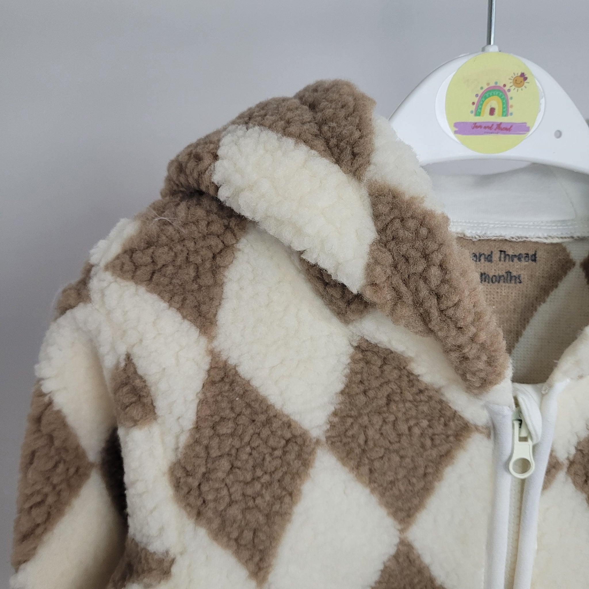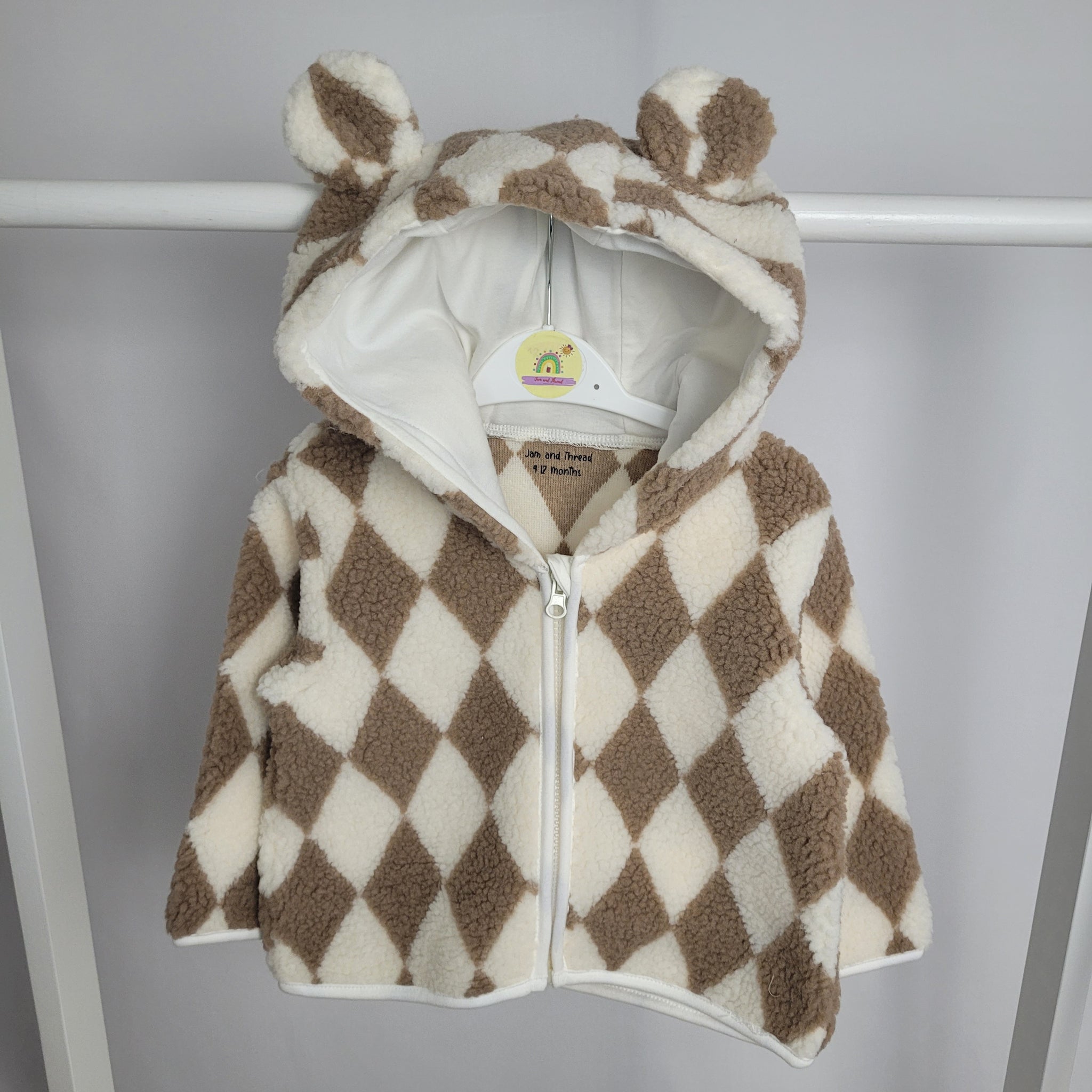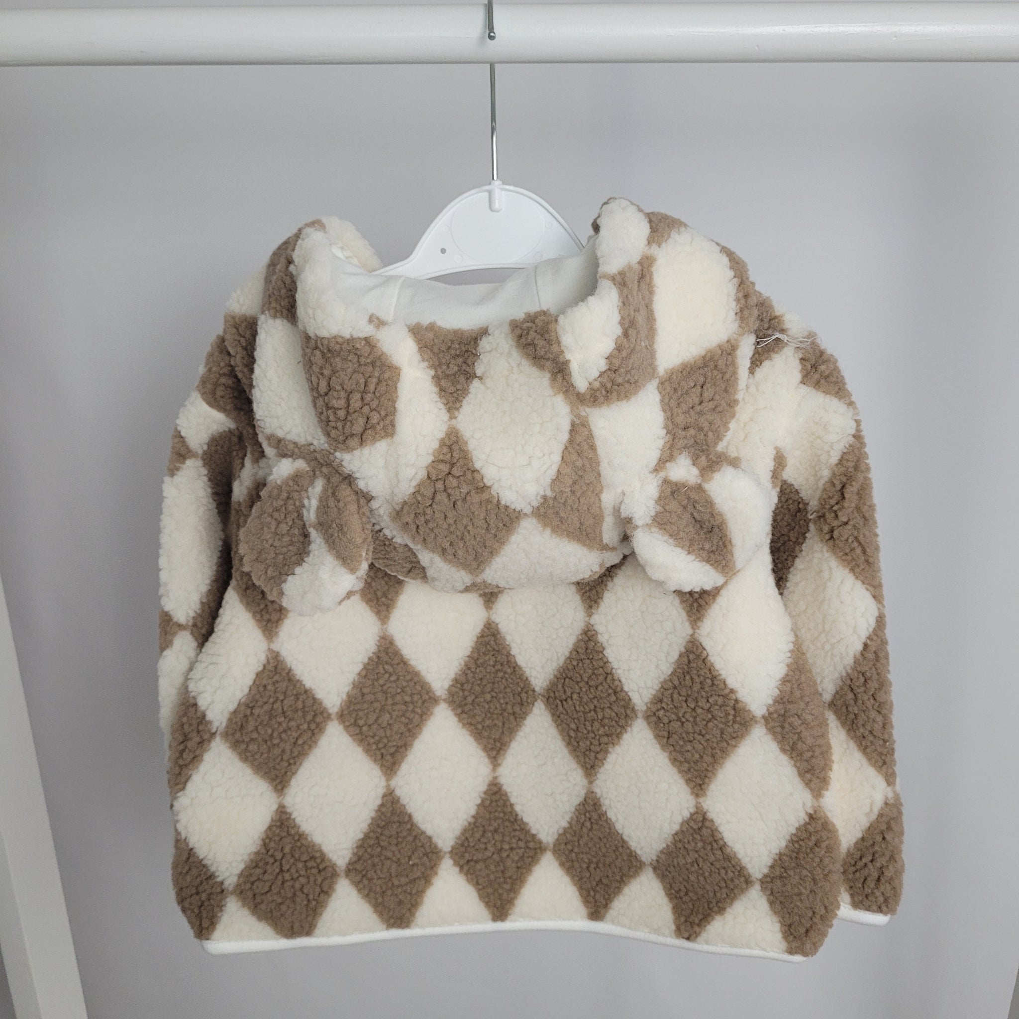 Get ready for cooler months with our Harlequin Beige and Cream Zip Up Fleece! This gorgeous fleece features a generous sized hood with a cute bear ear feature, perfect for staying warm and stylish. Made with super soft material, it's a great staple for layering and keeping cozy. Don't miss out on this neutral, unisex piece to complete your winter wardrobe.