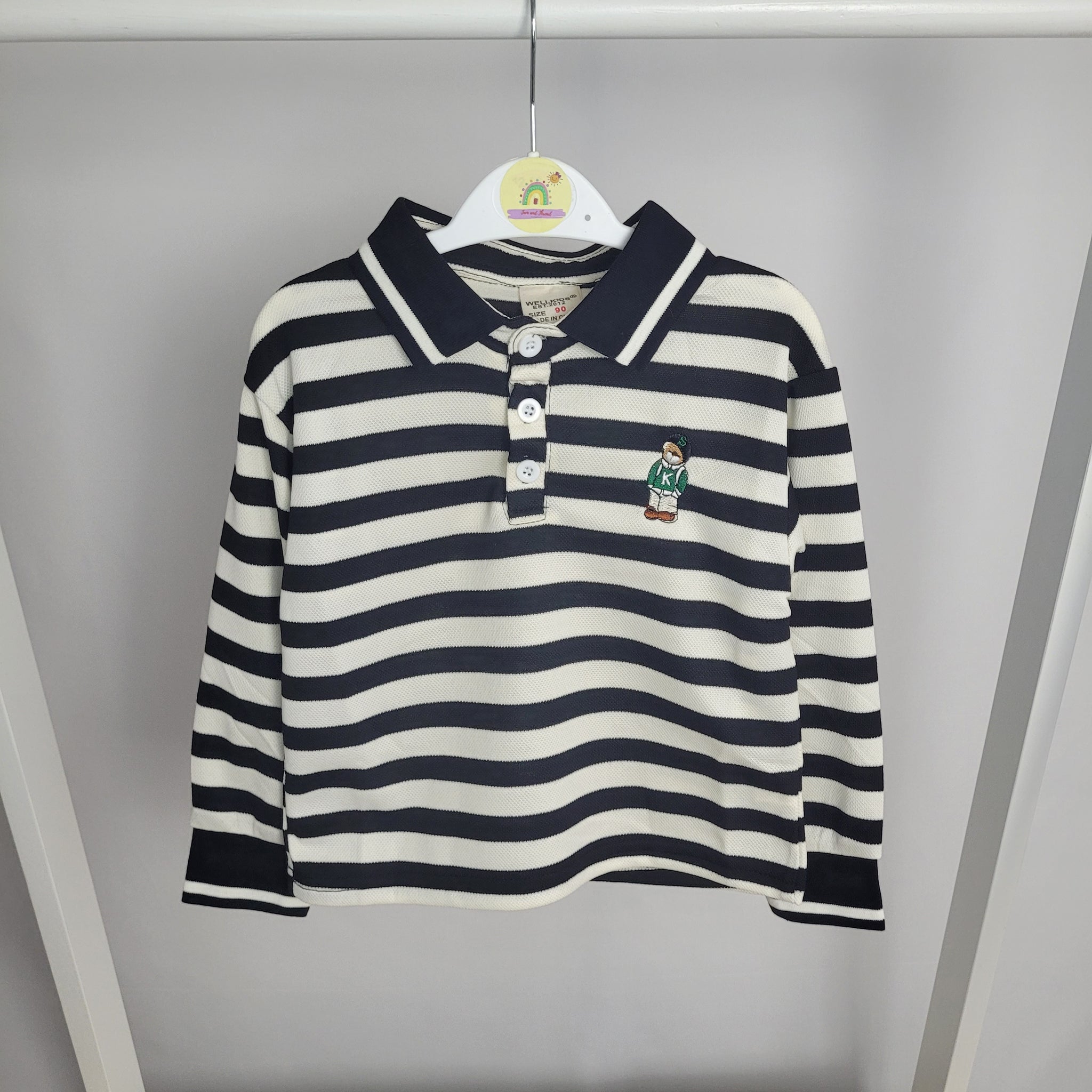 Elevate your little one's style with our black and white striped polo top. The black and white stripe design, accented with a small teddy graphic, adds a touch of fun to this versatile long sleeve polo top. Dress it up or down for any occasion and pair it with jeans, chinos, or combat trousers. Comfortable and stylish, it's the perfect addition to any boy's wardrobe!