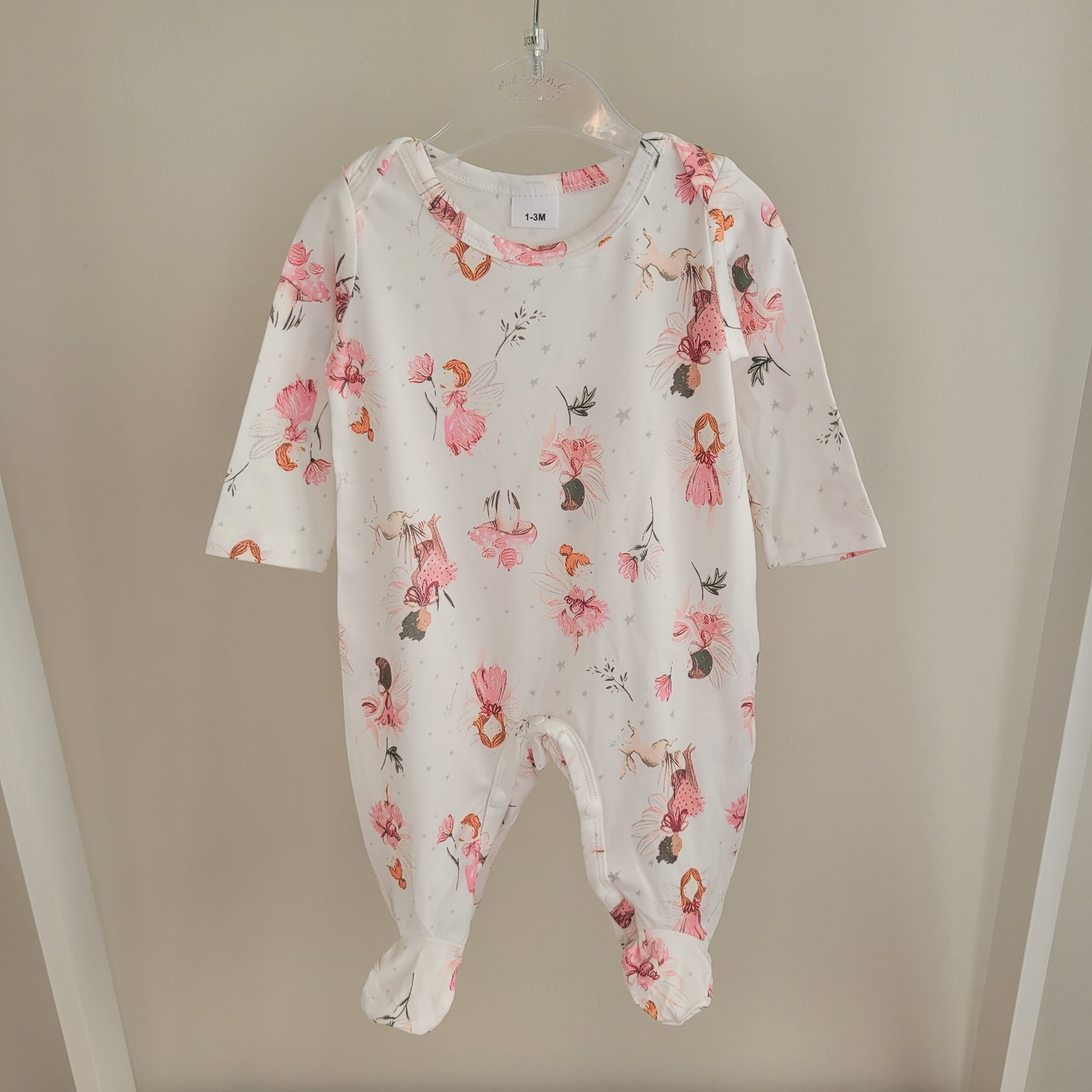 Experience magical moments with your little one in our White and Pink Fairy Babygrow. Made from soft, gentle material, this adorable onesie features an allover fairy print and popper buttons for easy dressing and nappy changes. Treat your baby to the comfort and cuteness they deserve. Perfect for gifting to new parents.